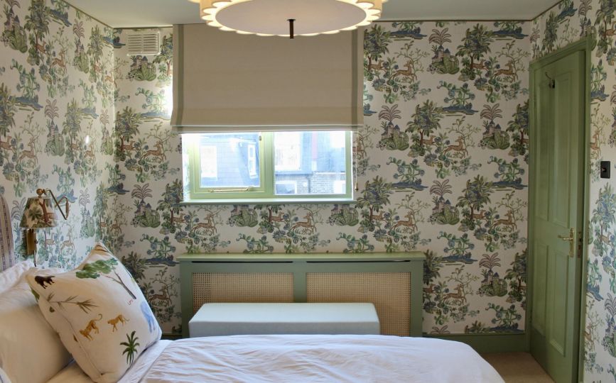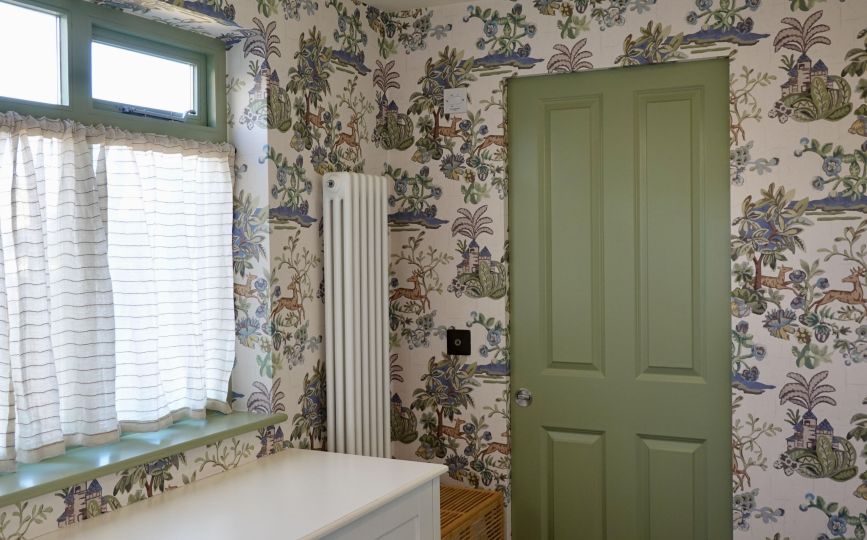 Complete interior decorating project created by Carina Harford and finished by N-compass which included wall preparation, wallpaper hanging, and final detailing.